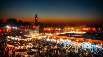 【不眠广场】位于马拉喀什的老城区,既是市民广场也是市场。因为每到夜幕降临,这里便热闹起来,各种小吃摊、货摊搭满整个广场,耍蛇和各种传统的演奏表演吸引很多游客,广场四周则有一些两三层小楼作为餐厅或咖啡吧。广场不远处就是库图比亚清真寺,因此整个广场区充满了浓郁的伊斯兰氛围。