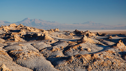 智利北部的阿塔卡马是离奇的探险圣地之一,土壤荒瘠、强酸性,连细菌也不能存活,每十年的降雨量,只能用毫米来度量,而在沙漠的某些部分,已经数百年都没有出现过丝毫的降水迹象。同时,这里也是地球上最接近火星的自然环境,美国国家航空航天局选择在这里测试火星探测器。