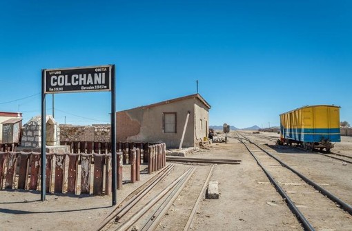 十九世纪九十年代,英国人在这里修建铁路,又引进了英国、法国制造的机车运输矿产。二十世纪四十年代附近的矿产枯竭,废弃的机车被集中停放在这里,部分s车厢画上了艳丽的涂鸦,成为乌尤尼的特色景观。