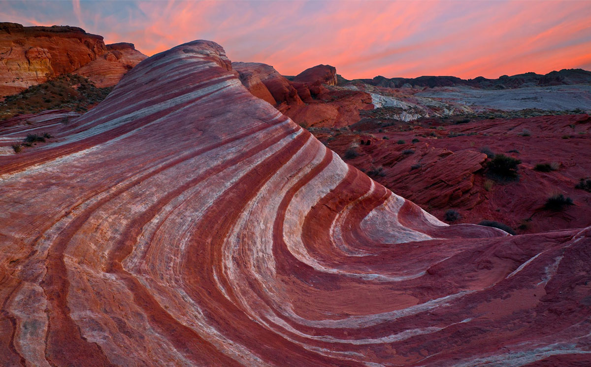 出了布莱斯峡谷会继续前往位于美国拉斯维加斯东北 90 公里处的【火焰谷州立公园】。它是内华达州最古老的国家公园之所以叫火之谷,是因为山谷中大面积露出地表的中生代时期的红色砂岩会在阳光下折射出像烈火般的红色,远远望去就像火烧山谷。 据考证,此地曾被当地的原住民印地安人认为是圣地,所以,在红色的砂岩之上还留有许多的壁画,壁画的内容包含当时的印地安人的生活及大自然的变化等。 游览结束后启程回到拉斯维加斯。