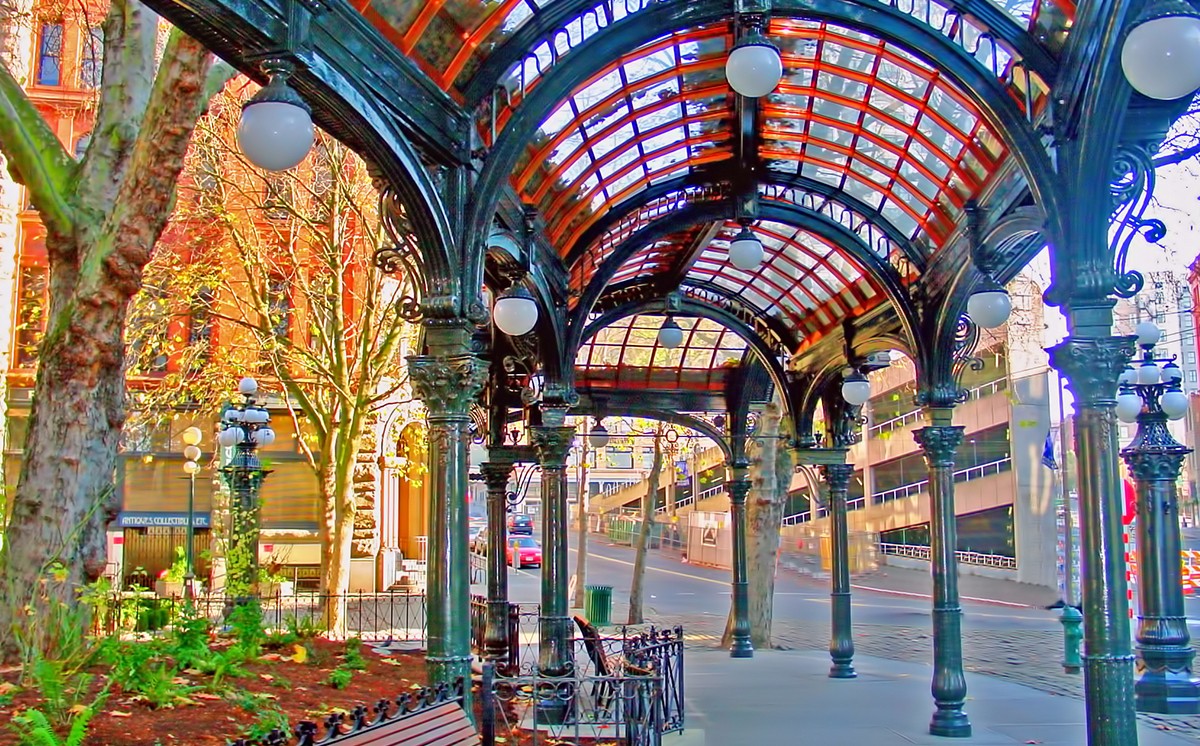 4.【先锋广场】是美国规模最大的历史建筑保留区之一,西雅图的起源地。每一栋建筑都诉说著当年西雅图开拓先民的故事,标志性的维多利亚式建筑物带您梦回100年以前那最热闹的商业中心。