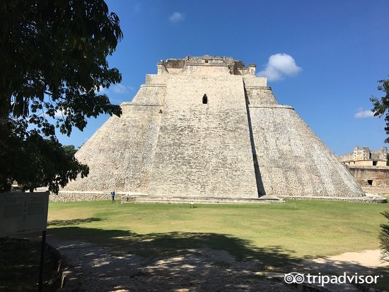 乌斯马尔城位于在墨西哥尤卡坦半岛北部,曾是玛雅人的礼仪中心,是商业与政治重地。遗迹的中心耸立着38米高的【魔法师金字塔】,传说女巫施魔术用鸡蛋孵出一个侏儒,侏儒一夜之间建成了这座金字塔,由此得名“魔法师金字塔”