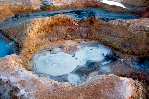 2.然后我们探索米湖周围湖泊的神秘景观,前往超凡脱俗的Námaskarð地热区,那里有彩虹色的泥浆池和充满喷气孔的喷气孔,蒸汽和硫磺的云层飘浮在空气中。这是一个完全超凡脱俗的生活景观。黑色城堡(Dimmuborgir)毗邻米湖,遍布夸张奇异的岩石构造和洞穴,常被称作地狱之门。