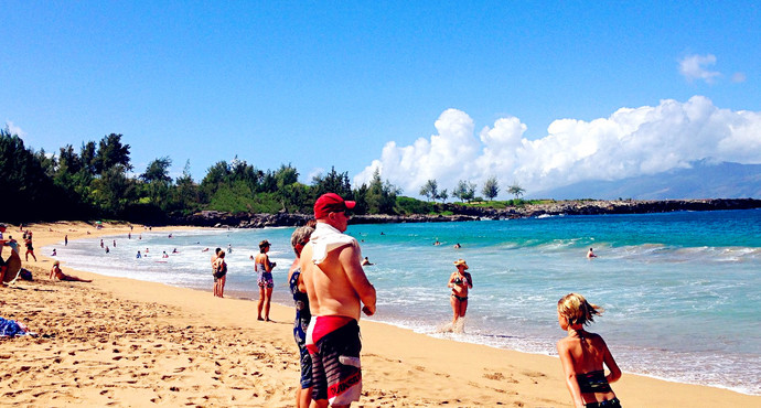 游览弗莱明海滩公园,位于茂宜岛西面介于Honakahua 海湾内岩浆间的白沙滩,海岸线全长1500英尺,宽150英尺,由于前滩的地理条件,为冲浪爱好者热爱的冲浪点。