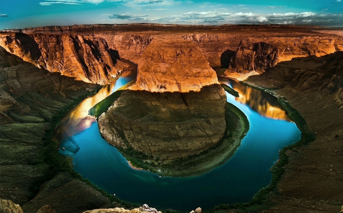 上羚羊谷还有一位好邻居,马蹄湾。马蹄湾是格兰峡谷中的一段,由于岩石形似巨型马蹄,故名“马蹄湾”。在这里俯视科罗拉多河无异是一种享受,阳光下四周闪耀着金属光泽的红色,再配以翡翠般的碧绿河面,你有理由相信,创造它的人一定是位艺术家。