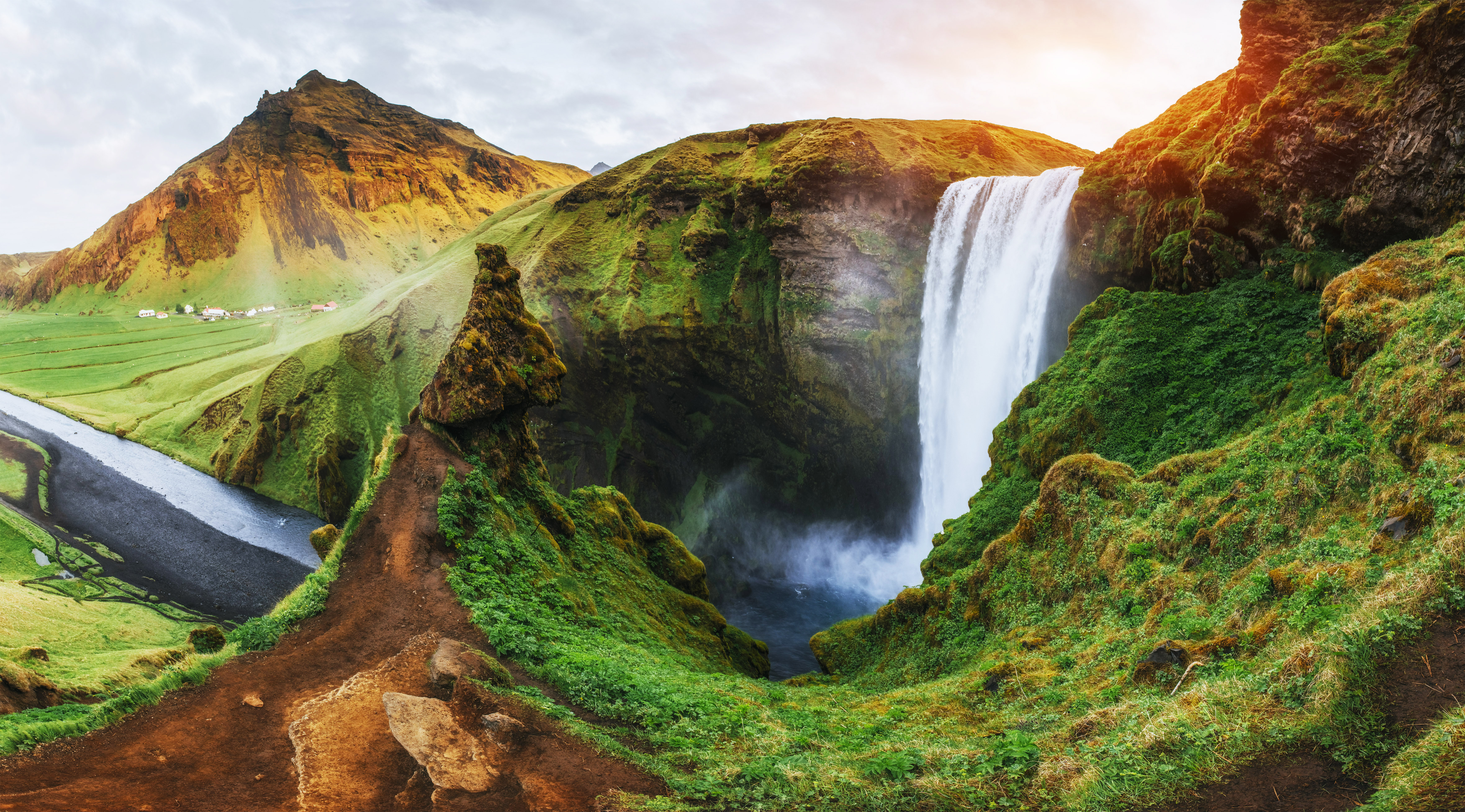 瀑布垂直高度63米,水来自冰川泉水,可直接饮用。瀑布后面、悬崖底部有一条可供人穿过的小径,在那里游 览拍照是这里的一大亮点,无数摄影师被它的美丽所倾倒,在不同的角度拍出了许多动人的作品。其最优雅美丽的时刻为日出或日落时分,太阳照耀在瀑布的水帘 上,幻化成一道美丽璀璨的水雾,令人陶醉。